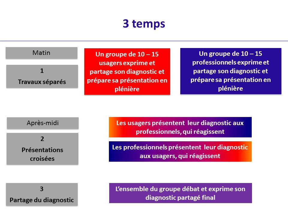- deux expertises (usagers et professionnels) convoquées et croisées